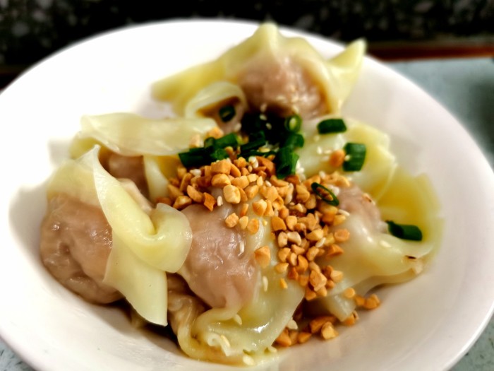 |干拌抄手^本来还担心抄手一定会有辣,没想到甜辣口味儿还可以选择不辣,简直是不吃辣小伙伴儿的福音。吃的稍微晚了一些,但是抄手之间也不会粘连,皮儿薄,馅儿超大,微甜口,很好吃。