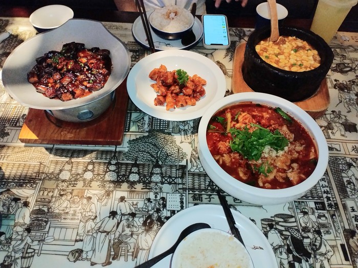 6.(大西洋银泰百货)爬完动物园真的很累。不想吃太油的。上到餐饮的那层。一看都是蛙喔,火锅。川菜。看到小团圆的宣传海边看起来还不错。结果到门口,很多人排队。就去了边上的乡村井冈?点了个粉蒸肉(很腻)。小炒肉(很油)。还有玉米排骨汤(没勺子和汤碗。又去找服务员要)最后就玉米排骨汤干完了。其他的没怎么动。