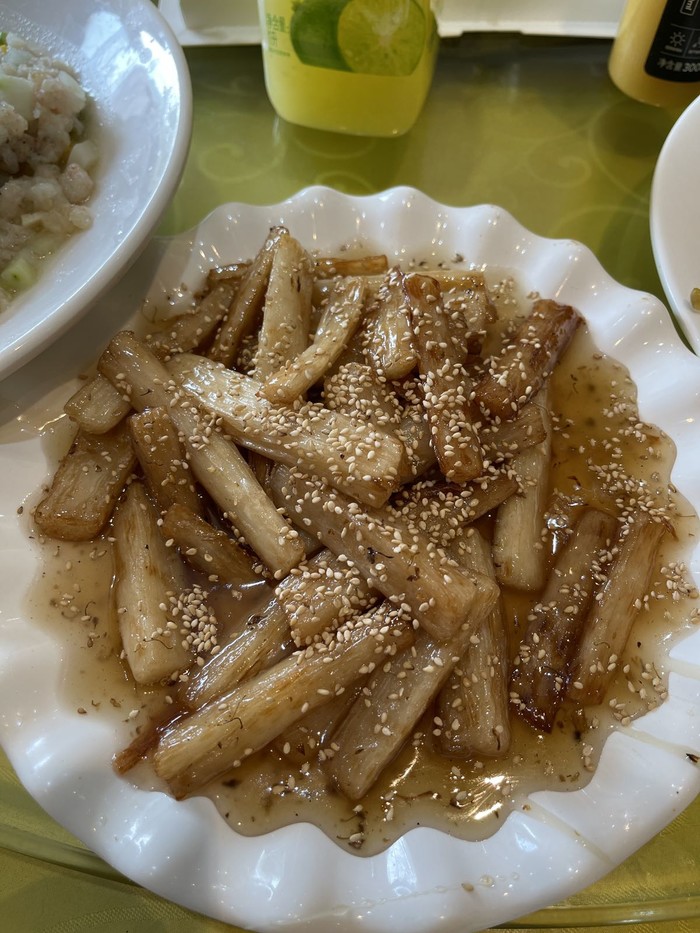 蜜汁山药。桂花酱蜜汁,山药软烂香甜