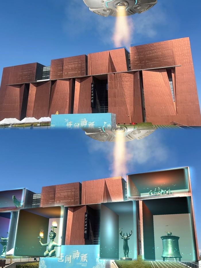 通过手机A噗"山海镜"就能在场馆外和大厅体验裸眼3D的镇馆之宝
