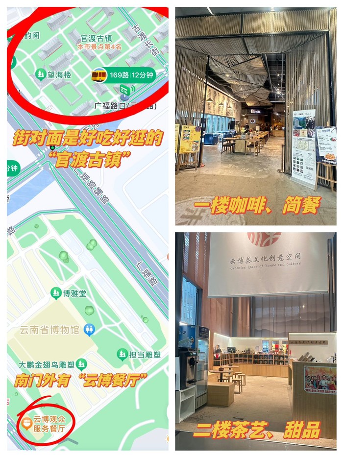 馆外有"云博餐厅",对面有"官渡古镇"