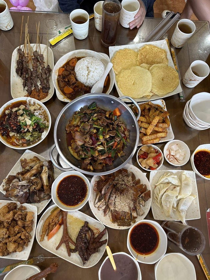 然后到"老弥勒"餐厅吃饭 满满一桌