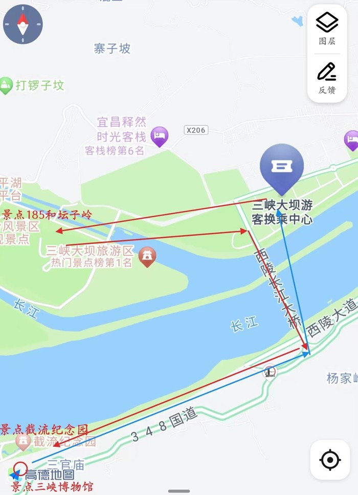 - 三峡坝区军为事管控区,先由三峡专用公路办理通行证才能到达游客换乘中心。