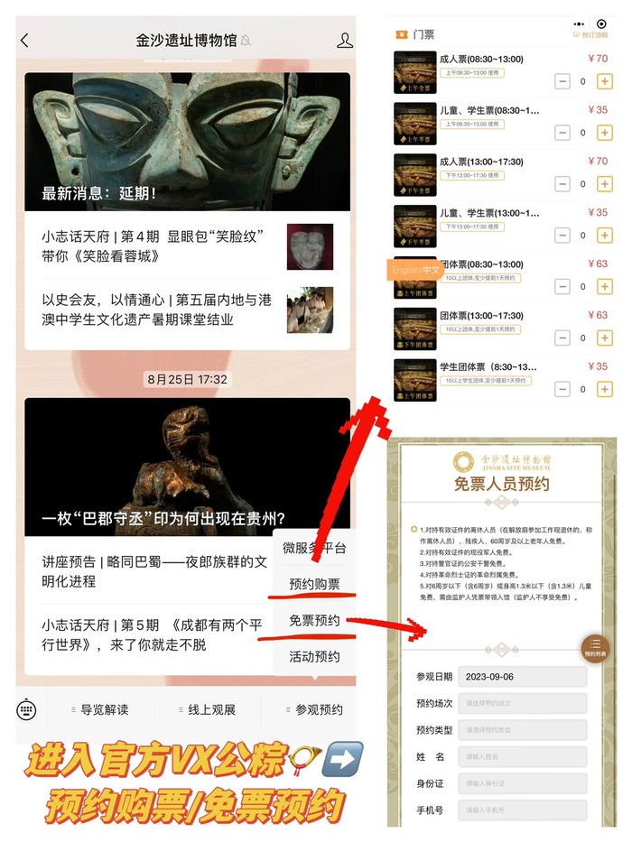进入金沙遗址博物馆,在闸门刷预约码或刷身份证即可