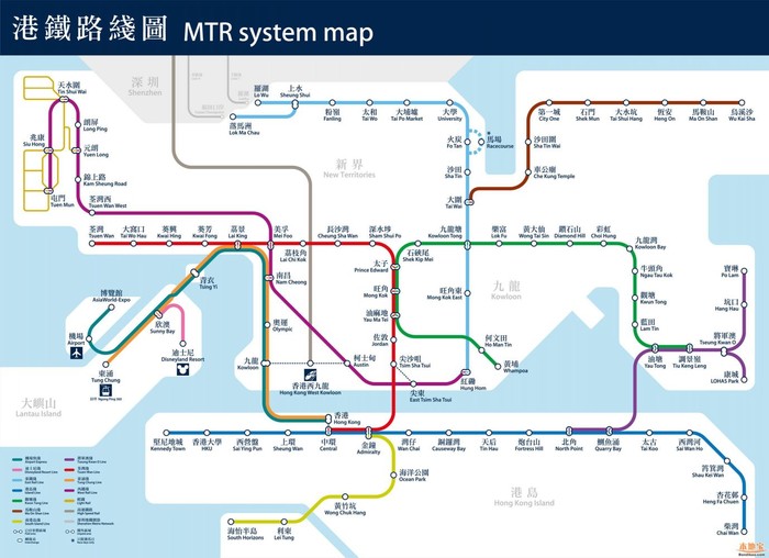 ①迪士尼:机场快线到青衣,换东涌线往东涌方向,到欣澳换迪士尼线。