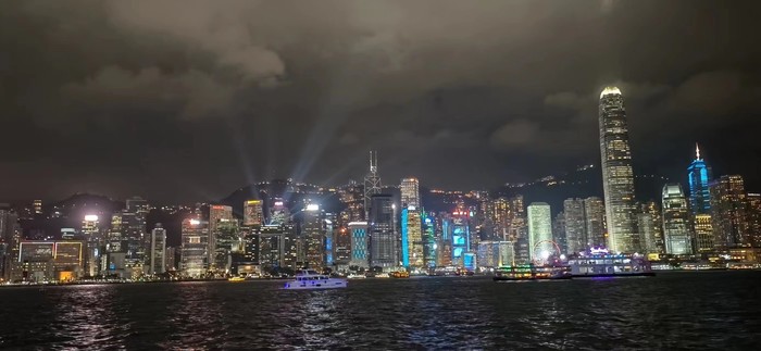 由于我们动车是下午到香港,办理完入住后,小休了下就到傍晚了,酒店就靠在维多利亚港,所以步行过去(时间大约二十分钟)。维多利亚港刚到时真有一种到上海外滩的感觉,百分之八十都是内地来旅游的朋友,满耳听去的都是标准的普通话、东北普通话,顺着维港看海景,对岸是中环灯光璀璨,海面上各种渡轮、游轮很繁华,顺着港湾往前就是星光大道、钟楼、科技博物馆、天星码头(天星小轮就是在钟楼这边的天星码头乘坐,单次五元港币(超值,强烈建议坐),对岸是紫荆花广场、香港回归纪念碑、AIA摩天轮(超值,强烈建议坐,20港币三圈),一圈逛下来就十点多了,回酒店!