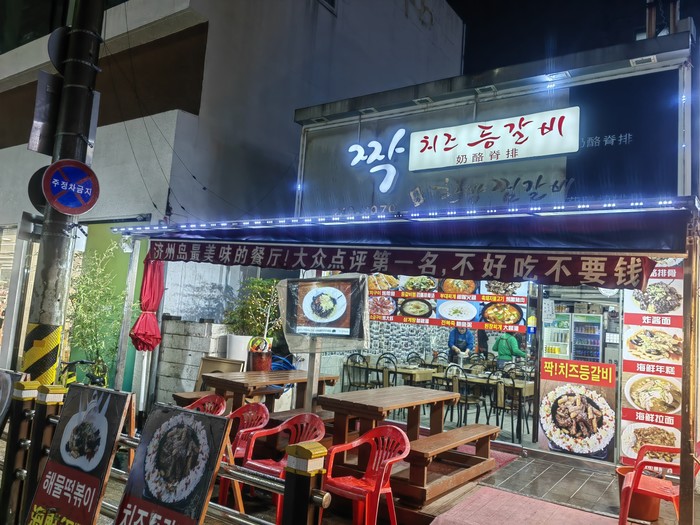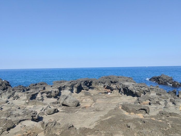 第一天到济州岛海边住的,周边没有什么吃的,都是海鲜,我们饶了海边从住宿的地方到龙什么崖景点来回走了好几圈,步数直冲3万