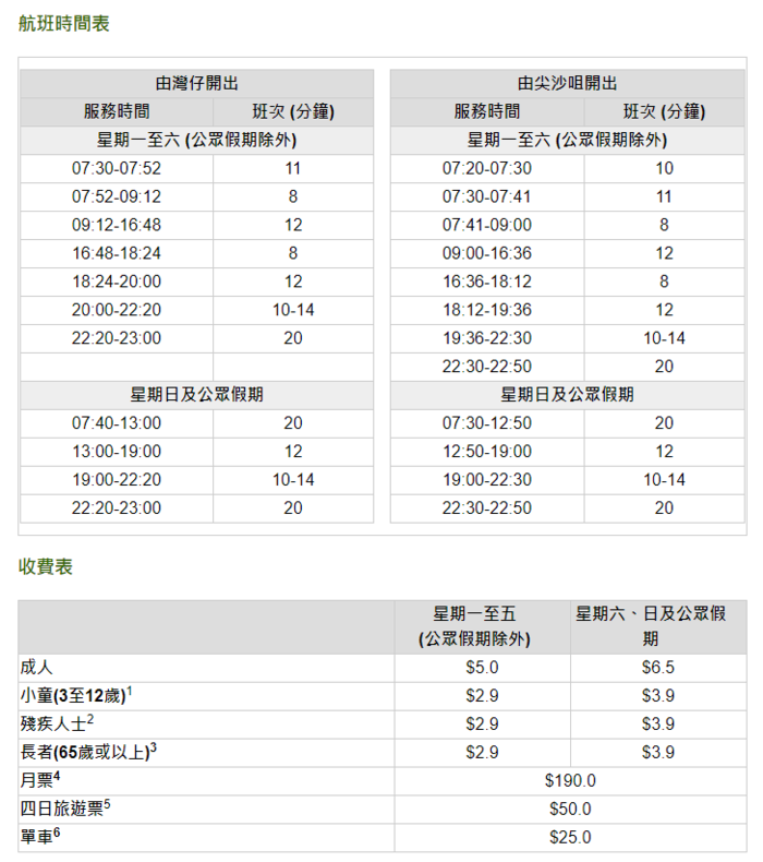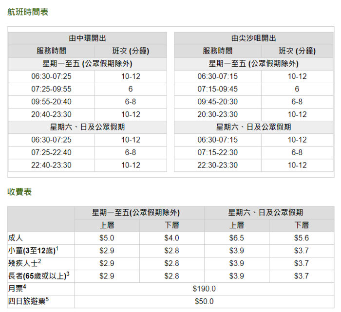 - 来往尖沙咀-中环渡轮服务时间,最后开出时间为01:00 (2023年12月25日)