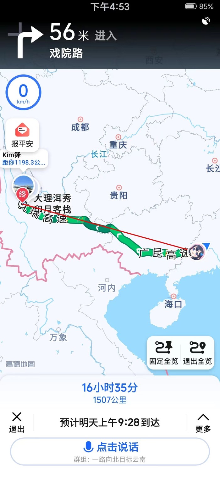 实际用时19小时左右,途中在服务区休息了一会,大家一定要主要休息不要硬撑,特别是一个司机的情况下!!!还有提醒一下我们整个旅程下来最冷也是出发这天的晚上,过云南界的时候在车上是盖着被子的把安检的警察叔叔都给震惊了