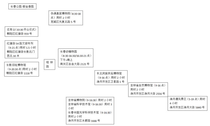 吉林省自然博物馆(9-16点,15:30停入),用时2小时,净月开发区净月大街2556号