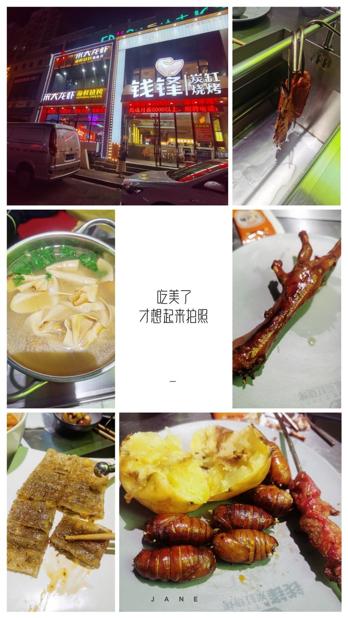 晚餐安排被猛烈种草的钱锋炭缸烧烤,鸡汤豆皮串我们那边没有,来一个试试,各种吊炉特色烤串来一拨,那个热做冷面和嘎达汤也是很好吃,烤土豆烤地瓜烤蚕蛹没有踩雷的,原谅我吃完了或者间隙空出手才拍拍照,哈哈,走一天真的是饿哇