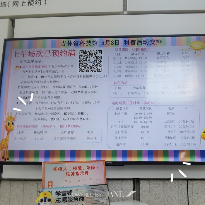 吉林科技馆的设计规划真的非常好,又合理又便捷,标识指示清晰明了,我们在里面一直转到了下午闭馆,也就差一个模块没有看完,虽然是五一假期,但是一点不觉得拥挤,除极个别的展品排不上,几乎都能体验到,真的不比北京科技馆差,下次再去不带补给了,地下有餐饮区域,还可以来杯咖啡小憩一下