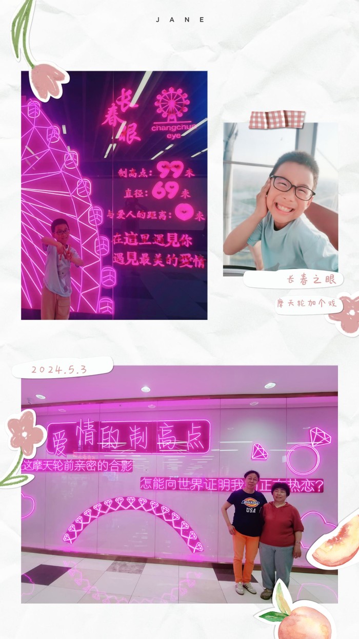 从科技馆出来我们就去完成昨天木有完成的事情,去坐摩天轮,它有一个好听的名字叫:长春之眼,到最高处的时候,刺激并快乐,我还给他们录了一个感想视频,以后看的时候也会觉得很逗