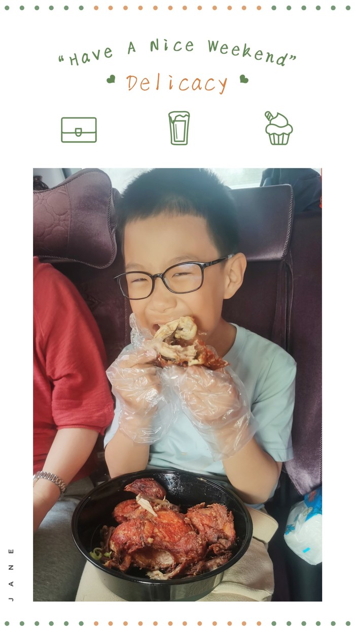 小分队在取米酒的店胜利会师后已经是午餐时间了,我跟真不同酒店订了香酥鸡和小笼包,大家在回程车上完成了补给,出来五天他们可能都有点累,路上迷迷糊糊睡着了,一觉醒来,傍晚时分,服务区歇歇脚,安全到家,五一出行完美收官