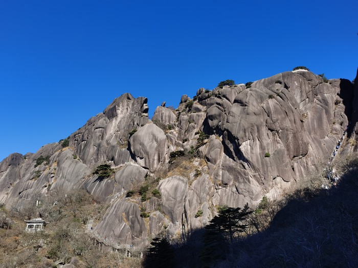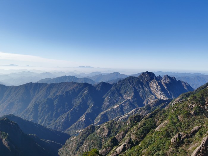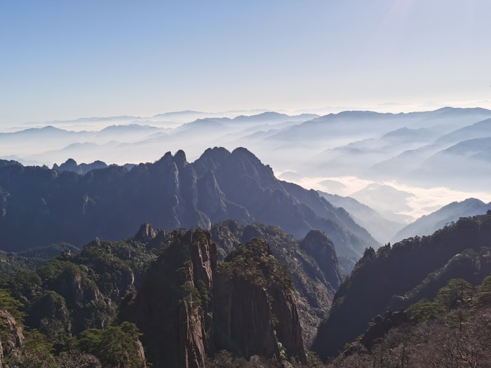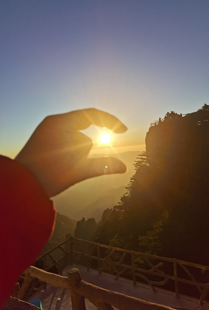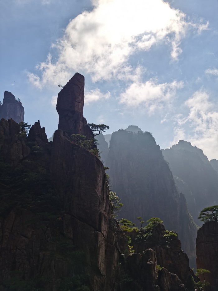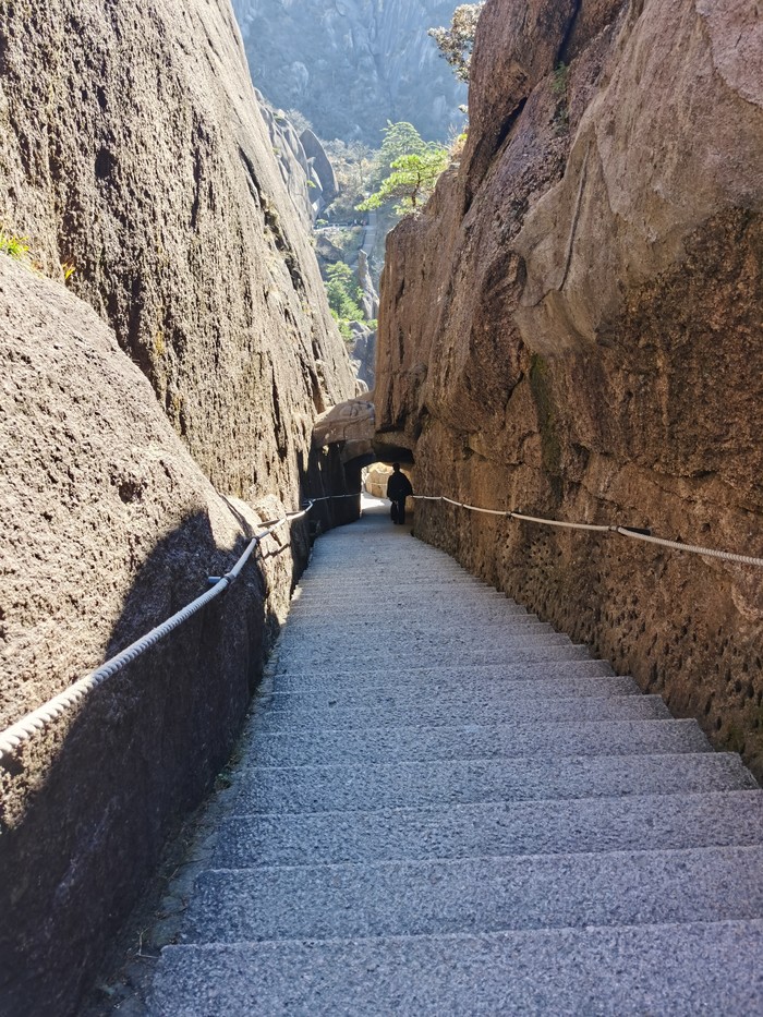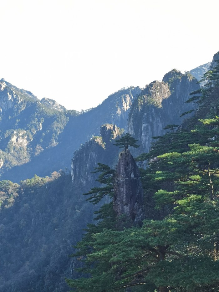 只有登上最高的山,才能看见最美的风景。我们奋力爬上鳌鱼洞,鳌鱼峰只能望峰兴叹了。有些后悔昨天的落日应该去鳌鱼峰看,登了两次光明顶,以至于现在没力气了。