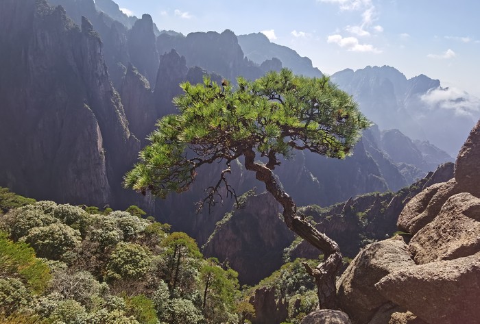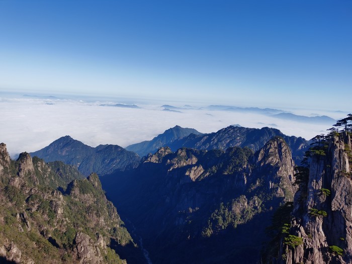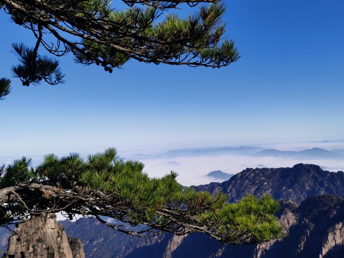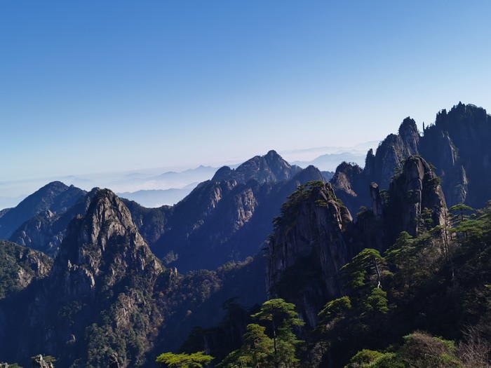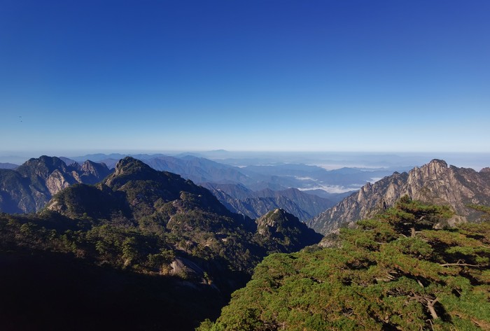 登上始信峰,方知徐霞客诚不欺我,“登黄山,天下无山,观止矣!”这里汇集了接引松、龙爪松、探海松等黄山名松,苍劲多姿,奇态万状。