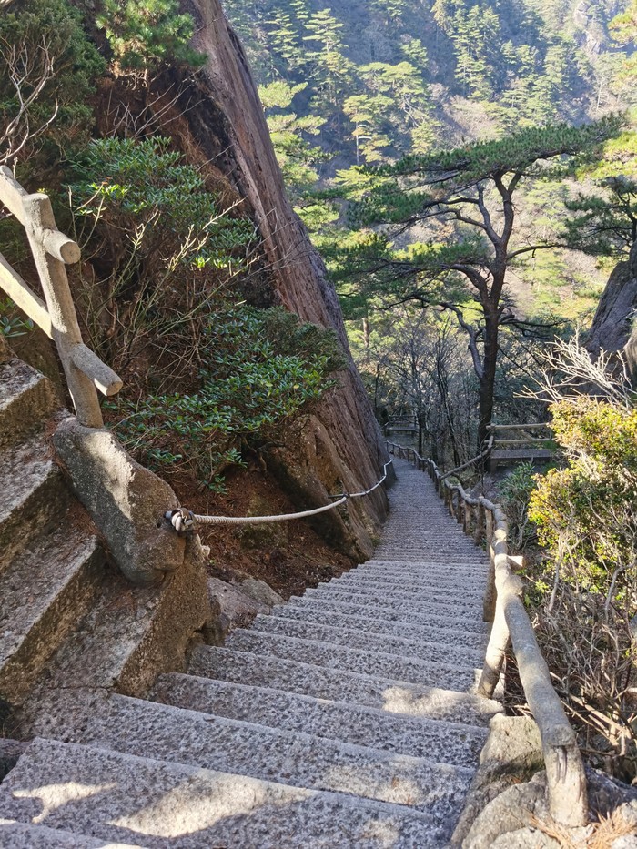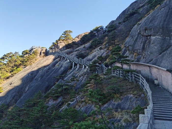 日落可以在光明顶或者鳌鱼峰看,日出则只能在光明顶。白云宾馆到光明顶步行需要20多分钟,今天日落时间是17点12分,我们16点多出来,一步一个台阶来到光明顶。