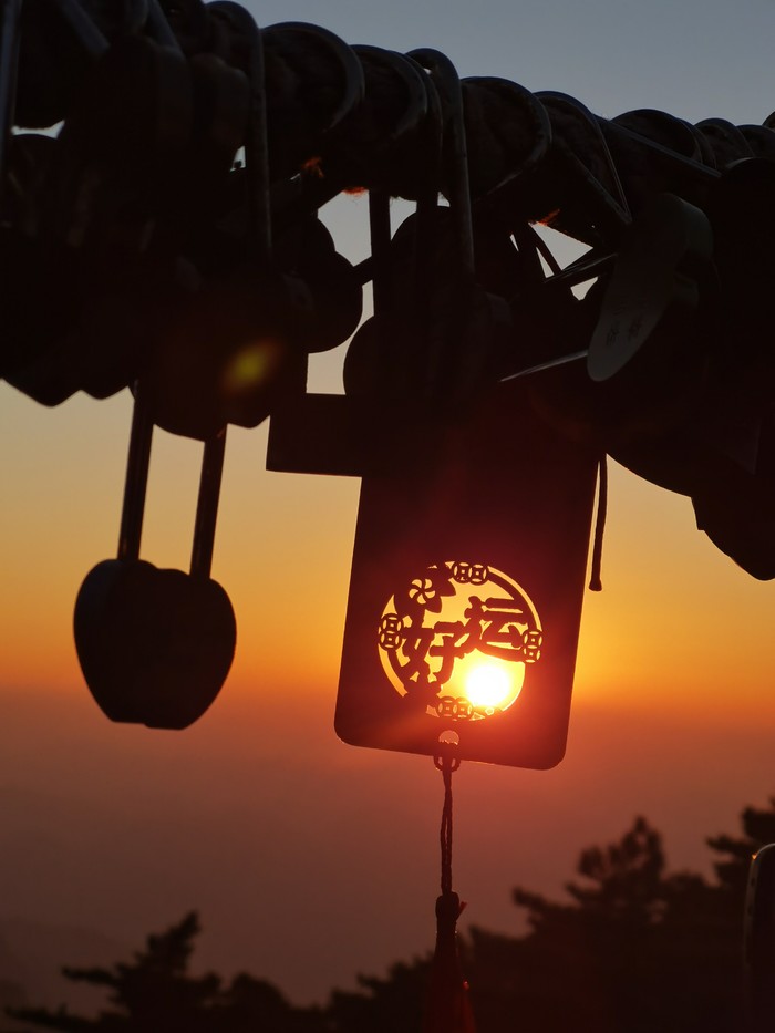 当落日余晖晕染了天边,光线逐渐变得柔和起来,透过许愿牌,你会发现太阳正努力把最后的温暖留在每个生命上,虽然有些无奈,有些留恋,它仍然尽力挣扎着,落得慢一点,再慢一点,直到渐渐没入地平线……