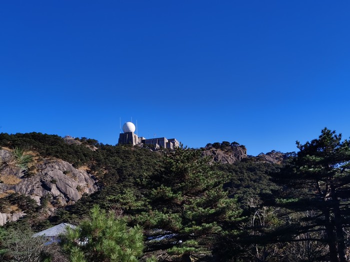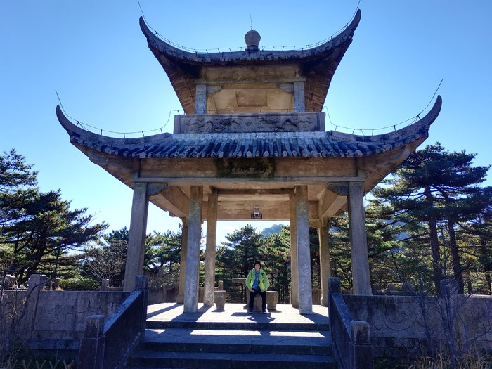 收拾背包继续向前山出发,经过海心亭,还能远远望见光明顶的大球。
