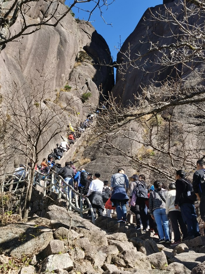 沿途经过一线天,看看排队的人群,果断放弃。可笑的是经过百步天梯时,累的我手脚并用,我家胖胖只顾向前走,直到走上去,还在问我百步天梯什么时候到,真是爬的莫名其妙。
