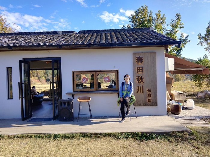 路边的咖啡馆也是网红打卡点,有个秋千,可惜后面有一大片稻子被收割了才略显荒凉。