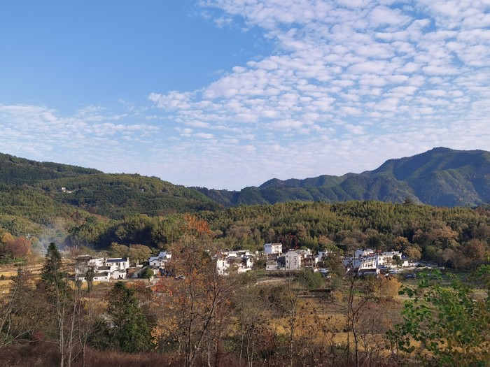 走了许久终于到了。塔川秋色与四川九寨沟、新疆喀纳斯、北京香山并列为中国最美四大秋色,走进塔川,村口及周围地带多种植乌桕树,树与树之间,同一棵树的不同叶子之间,由绿变黄或由绿变红,以至于最后落叶的时间都不尽相同。漫山树叶色彩斑斓,白墙灰瓦掩映其中,美不胜收,随手一拍都是美景,吸引了众多摄影爱好者纷至沓来。