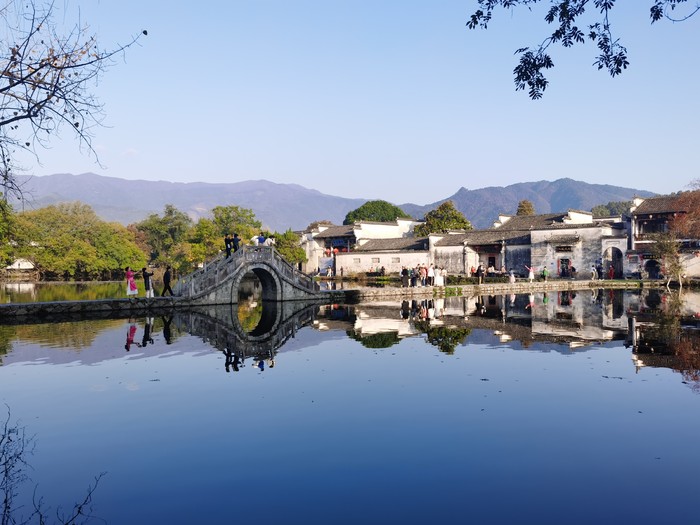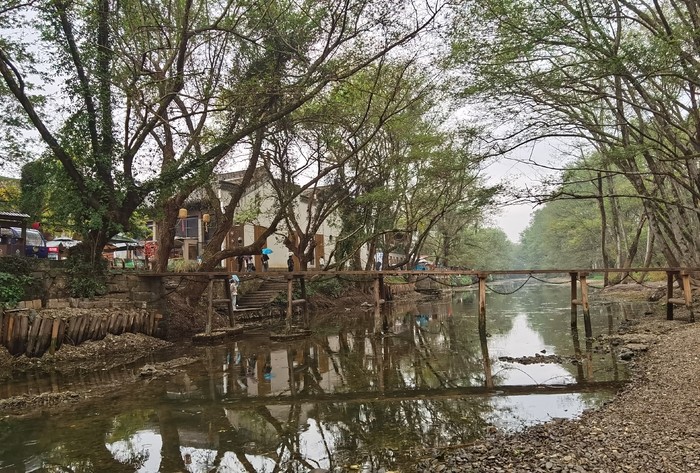 上午9点打车去西溪南古村落,村子不大,游人不多,初冬水量锐减,网红桥下的石板光秃秃的露着,没有溪水的滋润,有些寂寞。这与小红书上的网红图片判若两地,不是绿野仙踪吗?水呢?绿野呢?简直是买家秀和卖家秀的图片对比,哎,季节不对,估计夏季就是绿野仙踪了。