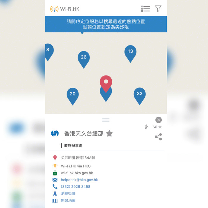 Wi-Fi.HK是一个方便市民及游客搜寻在香港所提供的完全免费或设有免费使用时段的「Wi-Fi.HK」热点位置,还能透过筛选范围来找寻离你最近的热点,像是便利商店、政府机关等地区皆有提供。最重要的是完全不用事先登入或注册即可使用喔!
