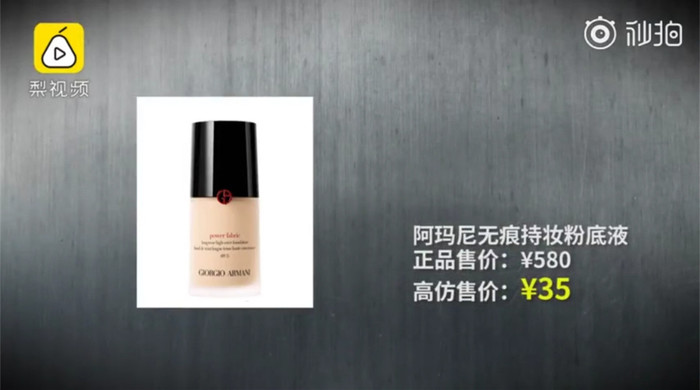 某品牌的粉底液正品售价580元,高仿售价仅35元。