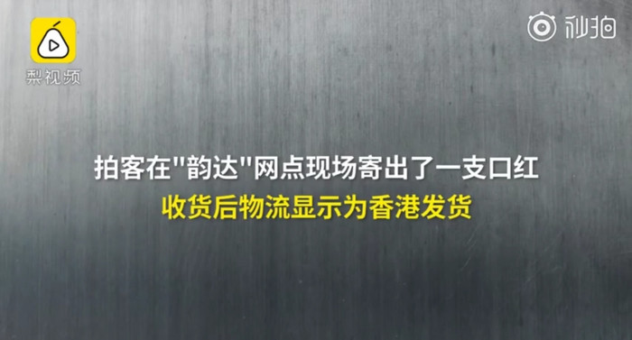 拍客在韵达广州网点现场寄出了一只高仿的口红,结果显示“韵达香港岛公司”揽件。